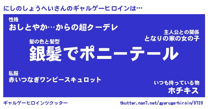 | ポケモン風あだ名 | 『ニシチュウ』『ニシノダネ』 |