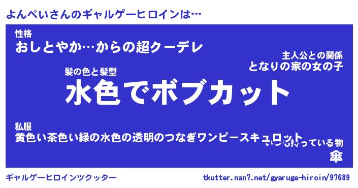 | 女子向けラノベタイトル風あだ名 | 『(仮)よんぺいのやんごとなき事情』 |