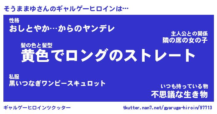 | 肩書あだ名 | 『そうままゆ御曹司』『そうままゆ班長』 |