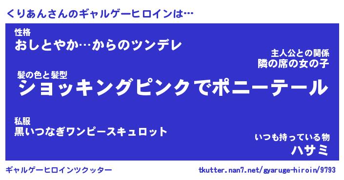| 意味不明あだ名 | 『ペロリンくりあん』『永久保存くりあん』 |