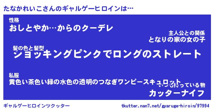 | ヒーロー風カッコイイあだ名 | 『スーパータナカレイコ』『暗黒騎士タナ』 |
