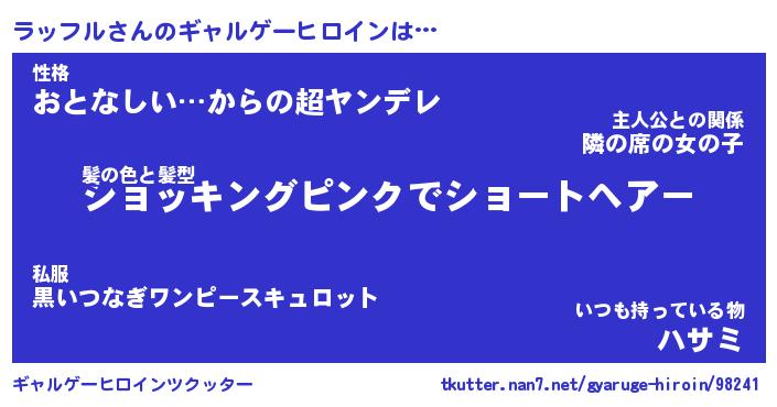 | 意味不明あだ名 | 『ペロリンラッフル』『永久保存ラッフル』 |