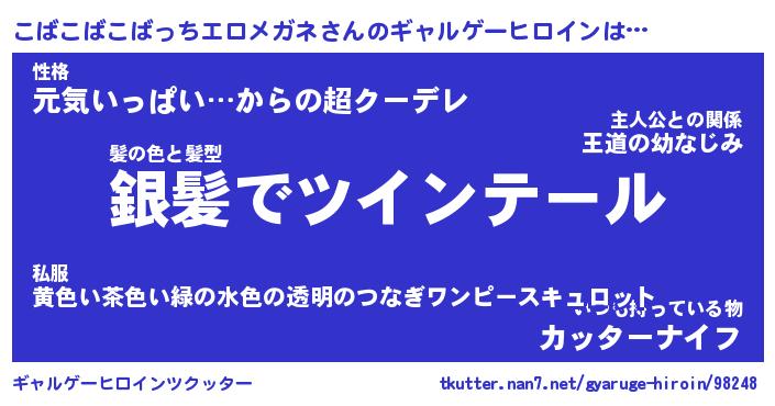 | 女子向けラノベタイトル風あだ名 | 『こばこばこばっちエロメガネ姫と円卓の騎士』 |