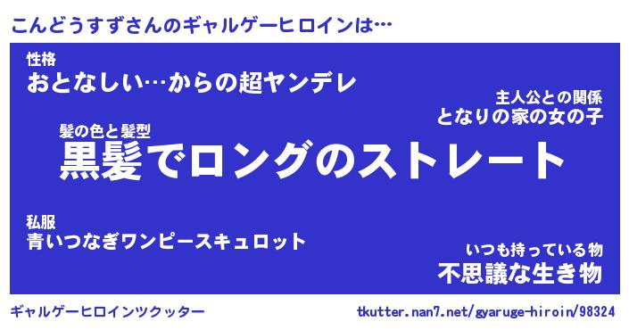 | 女子向けラノベタイトル風あだ名 | 『(仮)こんどうすずのやんごとなき事情』 |