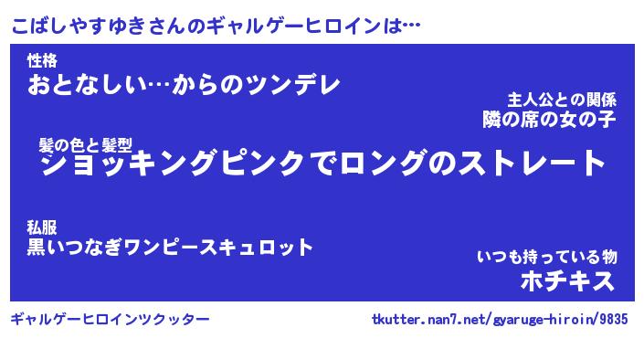 | 男性向けラノベタイトル風あだ名 | 『こばしやすゆきの憂鬱』 |