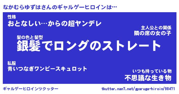 | 女子向けラノベタイトル風あだ名 | 『なかむらゆずは姫と円卓の騎士』 |