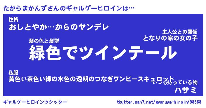| 女子向けラノベタイトル風あだ名 | 『たからまかんず姫と円卓の騎士』 |
