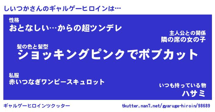 | ファンタジー風あだ名 | 『シイフェル』『エターナルシイツカー』 |