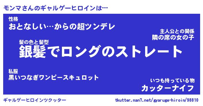 | 男性向けラノベタイトル風あだ名 | 『モンマの憂鬱』 |