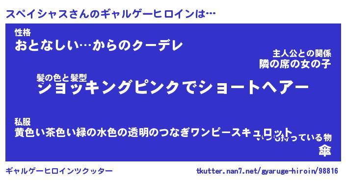 | 男性向けラノベタイトル風あだ名 | 『スペイシャスの憂鬱』 |