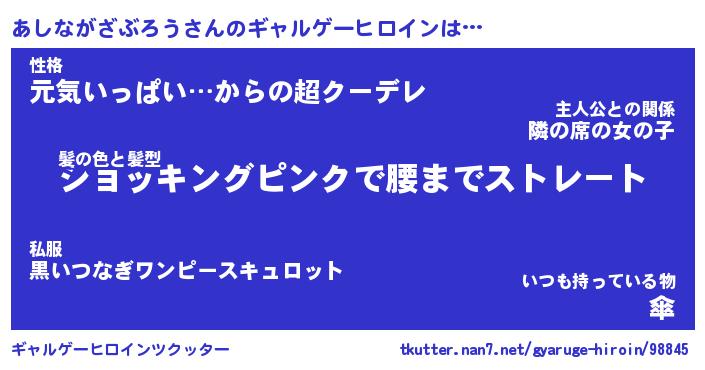 | 男性向けラノベタイトル風あだ名 | 『あしながざぶろうの憂鬱』 |