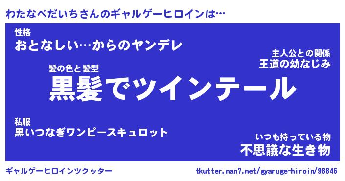 | 男性向けラノベタイトル風あだ名 | 『わたなべだいちの憂鬱』 |
