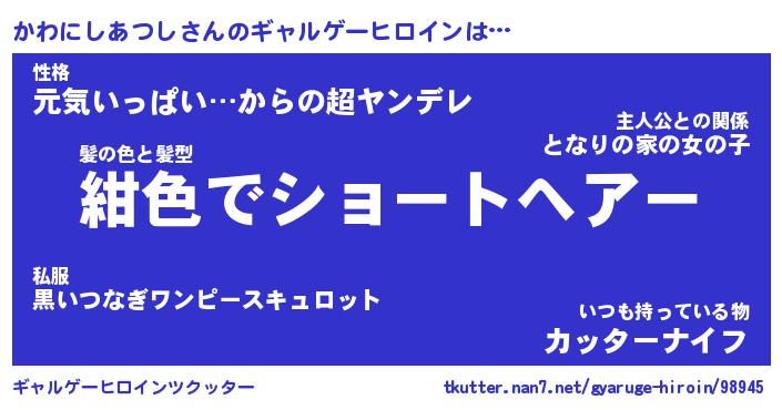 | ヒーロー風カッコイイあだ名 | 『スーパーカワニシアツシ』 |
