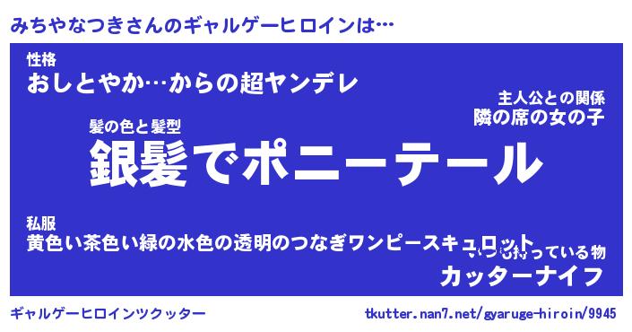 | ヒーロー風カッコイイあだ名 | 『スーパーミチヤナツキ』『魔戒騎士ミチ』 |