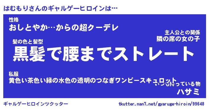 | 男性向けラノベタイトル風あだ名 | 『はむもりの憂鬱』 |