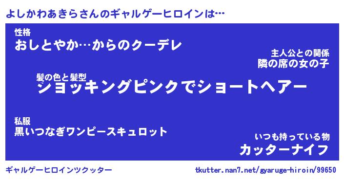 | 女子向けラノベタイトル風あだ名 | 『(仮)よしかわあきらのやんごとなき事情』 |