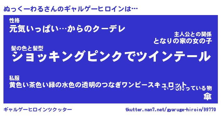 | 女子向けラノベタイトル風あだ名 | 『(仮)ぬっくーわるのやんごとなき事情』 |