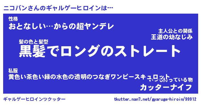 | ファンタジー風あだ名 | 『ニコフェル』『エターナルニコバンー』 |