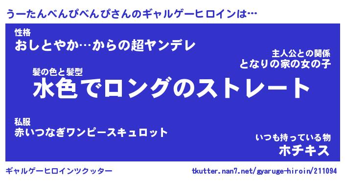 | 女子向けラノベタイトル風あだ名 | 『(仮)うーたんべんぴべんぴのやんごとなき事情』 |