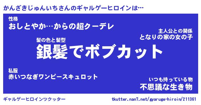 | 男性向けラノベタイトル風あだ名 | 『かんざきじゅんいちの憂鬱』 |