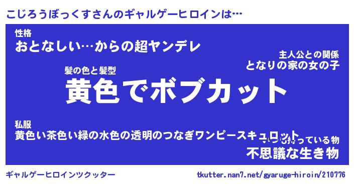 | 女子向けラノベタイトル風あだ名 | 『誰かこのこじろうぼっくすを説明してください! ~契約から始まるウェディング~』 |