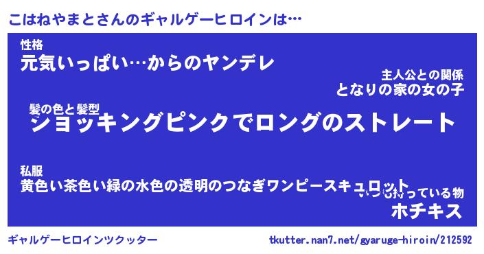 | 女子向けラノベタイトル風あだ名 | 『(仮)こはねやまとのやんごとなき事情』 |