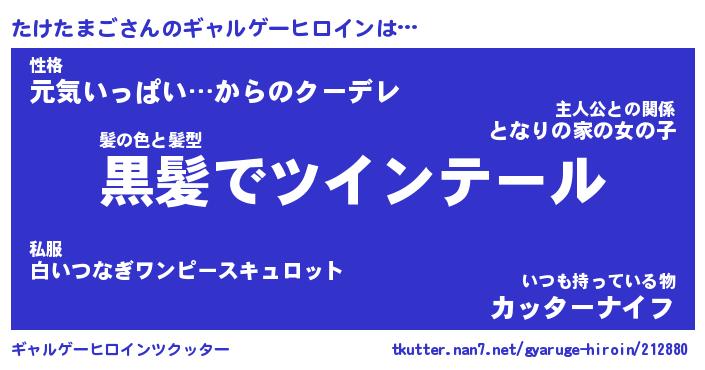 | 女子向けラノベタイトル風あだ名 | 『たけたまご姫と円卓の騎士』 |