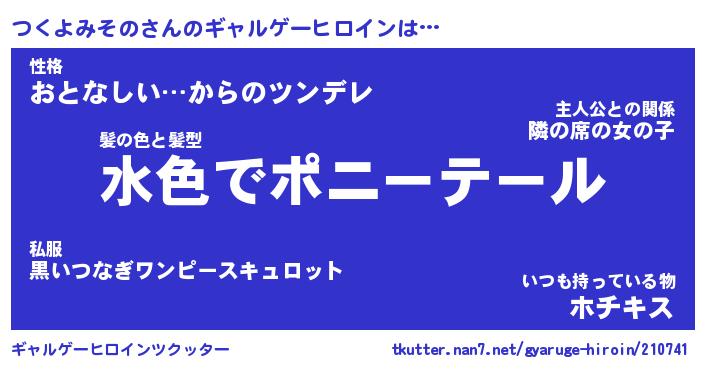 | 男性向けラノベタイトル風あだ名 | 『つくよみそのの憂鬱』 |
