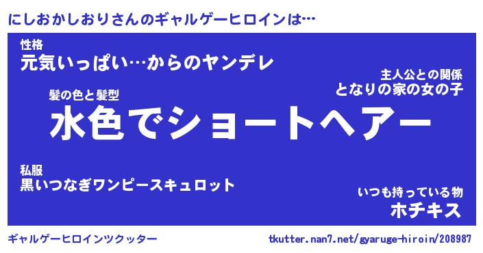 | 肩書あだ名 | 『にしおかしおり御曹司』 |