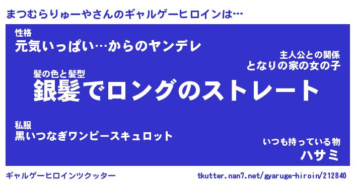 | 女子向けラノベタイトル風あだ名 | 『まつむらりゅーや姫と円卓の騎士』 |