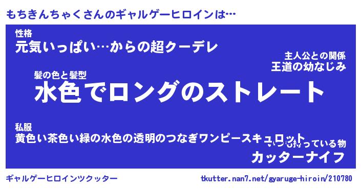 | 女子向けラノベタイトル風あだ名 | 『(仮)もちきんちゃくのやんごとなき事情』 |