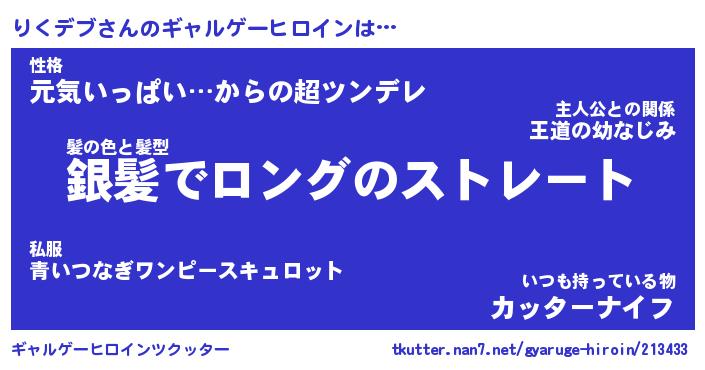 | 男性向けラノベタイトル風あだ名 | 『リクデブアートオンライン』 |