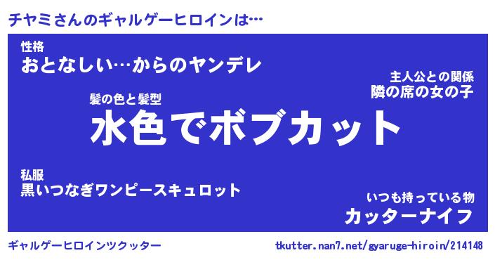 | ファンタジー風あだ名 | 『チヤフェル』『エターナルチヤミー』 |