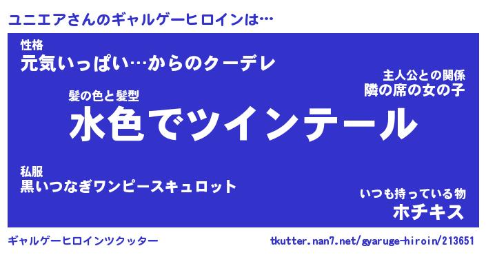 | 意味不明あだ名 | 『ペロリンユニエア』『永久保存ユニエア』 |