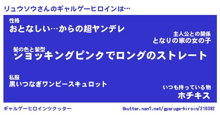 | ファンタジー風あだ名 | 『リュフェル』『エターナルリュウソウー』 |