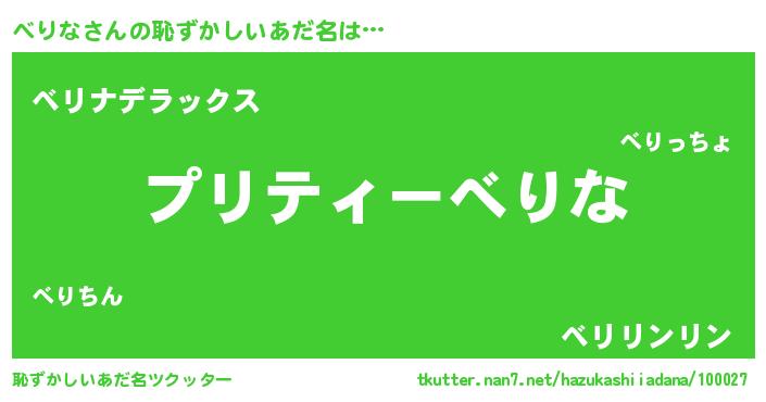 | 意味不明あだ名 | 『もやし科べりな属』『ペロリンべりな』 |