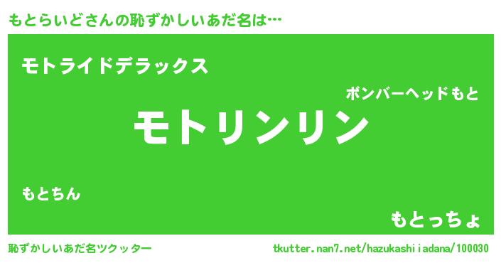 | 意味不明あだ名 | 『とにかく怪しいもとらいど』 |