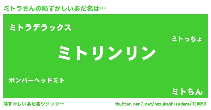 | ヘコむあだ名 | 『ミトを』『ミトラ(苦笑)』『牛乳』 |