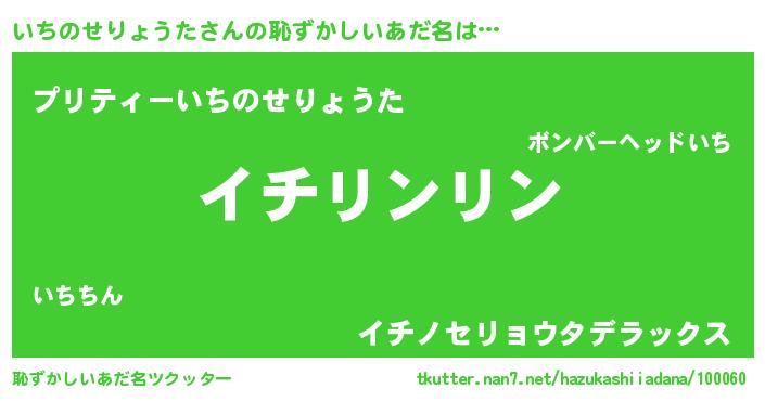 | 意味不明あだ名 | 『とにかく怪しいいちのせりょうた』 |