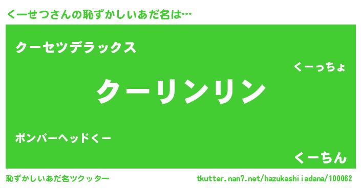 | 意味不明あだ名 | 『とにかく怪しいくーせつ』 |