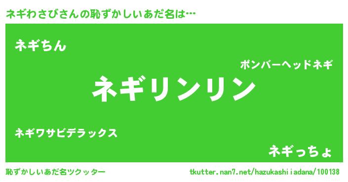 | 意味不明あだ名 | 『住所不定無職ネギわさび(56歳)』 |