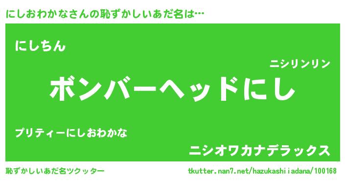 | ヘコむあだ名 | 『にしおわかな(遠い目)』『にしを』 |