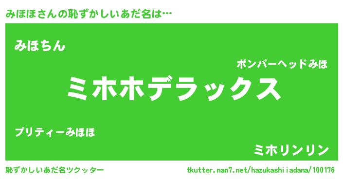 | ヒーロー風カッコイイあだ名 | 『仮面ミホダー』『最強戦士ミホホ』 |