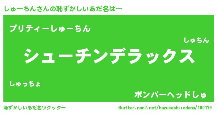 | 意味不明あだ名 | 『自称しゅーちん』『ペロリンしゅーちん』 |