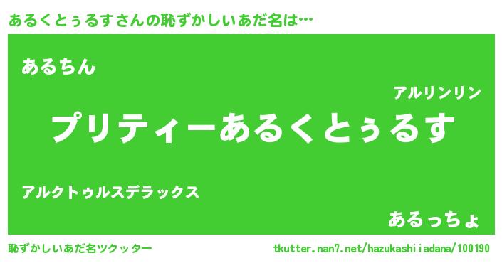 | ヘコむあだ名 | 『あるにー』『あるくとぅるす(笑)』 |