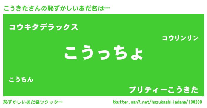 | 女子向けラノベタイトル風あだ名 | 『こうきたの雑貨屋さん』『闇のこうきた』 |