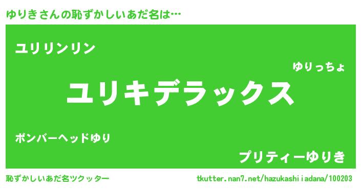 | 意味不明あだ名 | 『自称ゆりき』『とにかく怪しいゆりき』 |