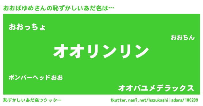 | 意味不明あだ名 | 『とにかく怪しいおおばゆめ』 |