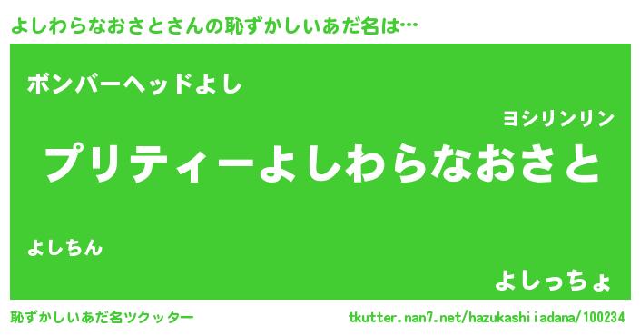 | 女子向けラノベタイトル風あだ名 | 『誰かこのよしわらなおさとを説明してください! ~契約から始まるウェディング~』 |