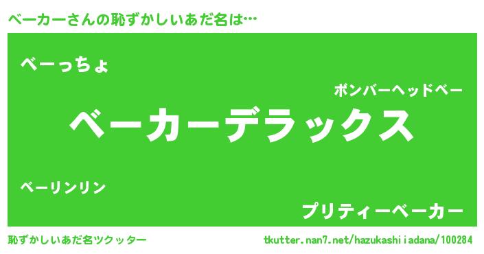 | 女子向けラノベタイトル風あだ名 | 『ベーカーなんてお断りですっ。』 |